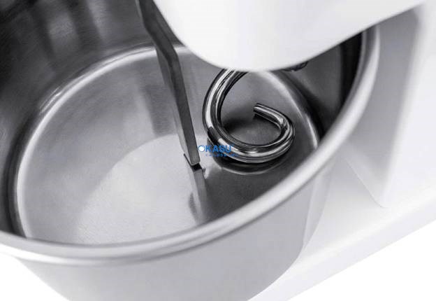 Lò xo xoắn trung tâm nhẹ nhàng kéo bột từ đáy lên, đảm bảo mọi hạt bột đều được xử lý đồng đều.